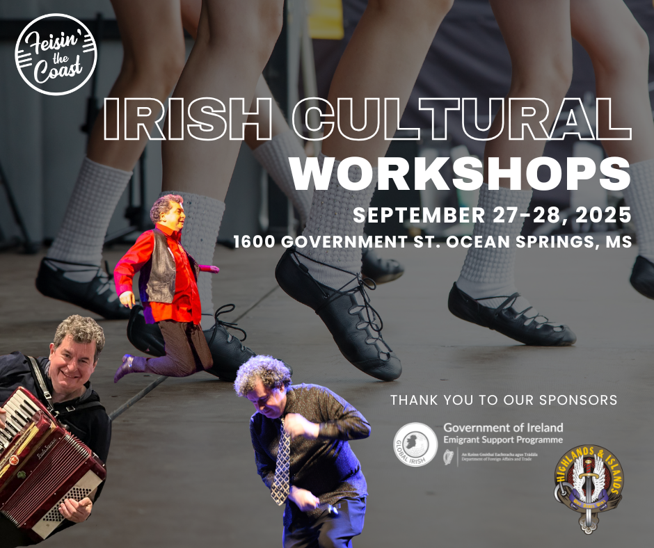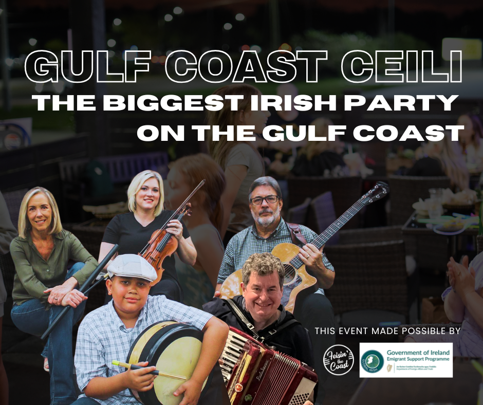 Experience the magic of Ireland on the Gulf Coast with an evening of lively music, Irish dancing, and community fun! Enjoy performances by Emerald Accent, join in on céilí dancing, or simply relax with your favorite refreshments in a family-friendly, casual atmosphere.